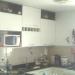 Cozinha com armários, oitões livres, rua pavimentada, piso em cerâmica.